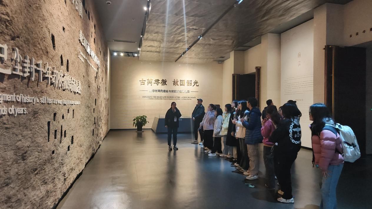 最后,同学们来到了梁带村芮国遗址博物馆。芮国遗址博物馆作为近年来考古研究的重要成果展示地,通过丰富的文物展品和先进的展示手段,揭示了芮国从西周早期到晚期的政治、经济、文化发展脉络。博物馆展出的青铜礼器种类繁多,包括鼎、簋、鬲、尊、盘等,这些青铜器在西周时期是贵族阶层进行祭祀、宴饮等礼仪活动的重要用具。员工们在这里近距离观察了古代青铜器、玉器等珍贵文物,并通过互动体验,加深了对古代社会结构和礼乐文明发展的认识。