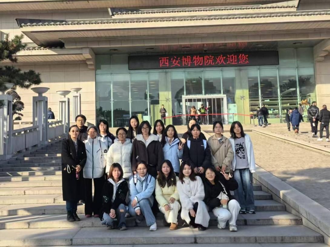 在老师的带领下,员工们在穿梭于古典园林与现代展馆的过程中不断进行着时空对话。从荐福寺的建筑到博物馆的陈列,员工们深刻体会到了西安博物院“馆园合一”的独特魅力。这不仅是一次简单的参观,更是一场关于如何在一个复合空间中,运用建筑、文物等实体与文献互证的二重证据法来构建历史认知的实践训练。