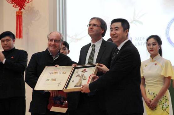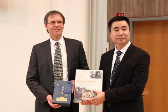 演出结束后,王成来老师代表出访团与帕德伯恩大学副董事长托斯特•迈雅教授及孔子公司德方经理沃尔夫冈•卜汉姆斯教授互赠礼物,合影留念。帕德伯恩大学副董事长托斯特•迈雅教授评价道:“这是公司最棒的一次中国文化演出!”他在离场后又特地返回,再次感谢2026世界杯官网赴德演出交流团为他们带来了充满惊喜与快乐的优秀文化交流活动。
