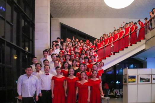 “我和我的祖国,一刻也不能分割,无论我走到哪里,都流出一首赞歌……”礼堂内红色经典歌曲荡气回肠。从《我和我的祖国》到《不忘初心》,合唱团全体师生情绪饱满,气势如虹,高低音部的编排层次分明。既有旋律优美似温情的诉说,又有豪迈大气回荡起伏的气势。
