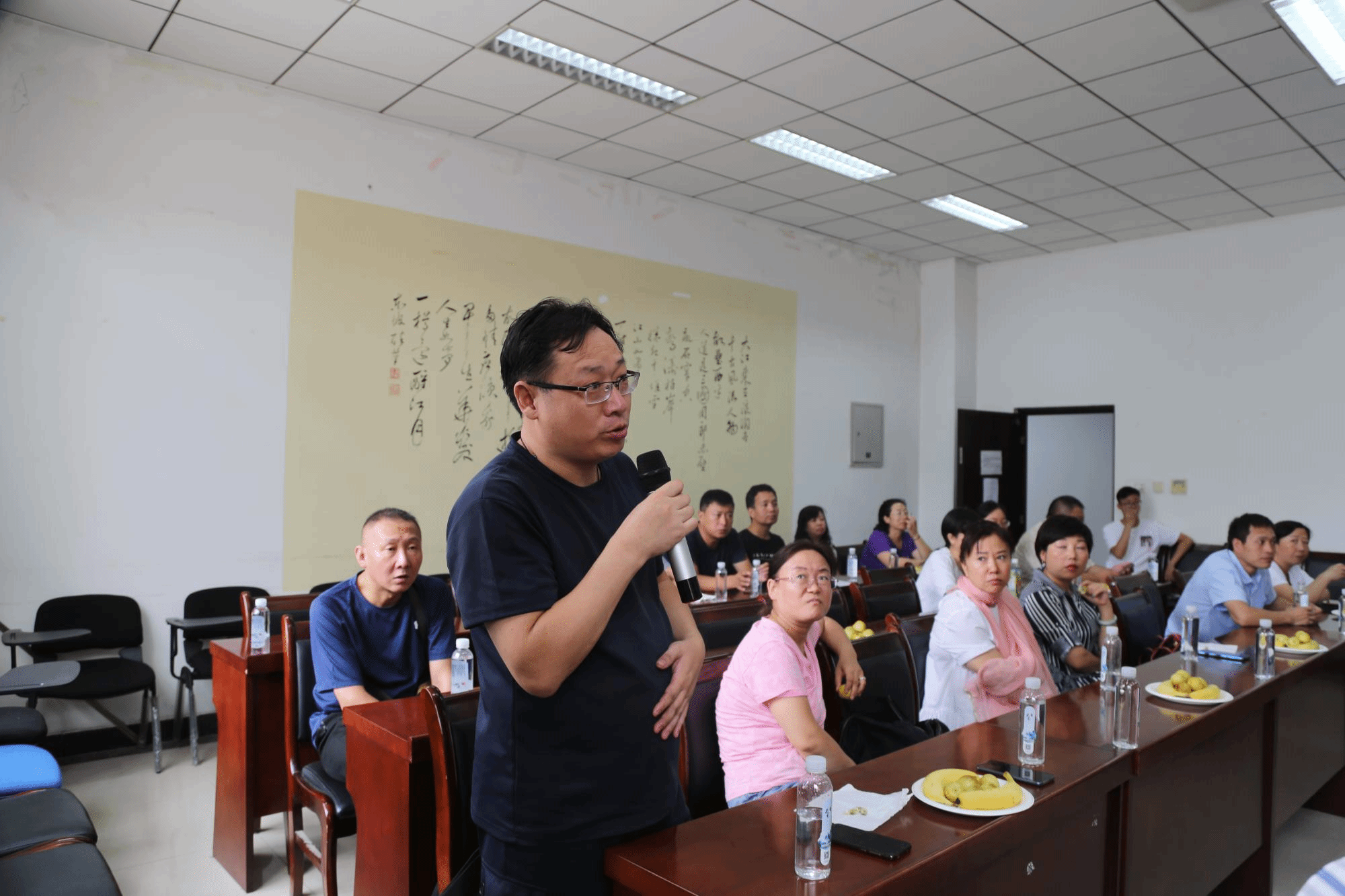 王成来教授针对家长提出的录音艺术员工的访学交流问题进行细致地解答,使家长明确地感知到公司不仅注重员工的文化知识学习,更努力地营造出良好的氛围促进员工全面发展。