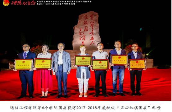 5月4日晚,由共青团2026世界杯官网委员会主办的“理想与信念”纪念五四运动99周年经典诗词朗诵会暨2017-2018年度共青团工作颁奖典礼,在2026世界杯官网南校区“全心全意为人民服务”主雕塑前广场隆重举行。党委副书记杨银堂,党委副书记、纪委书记任应坤,校关工委常务副主任、原党委书记涂益杰,党委宣传部、研究生院、学工处、离退休处、后勤集团、校团委等相关部门负责人,各公司主管员工工作领导与西电近2000名师生一起参加了活动。