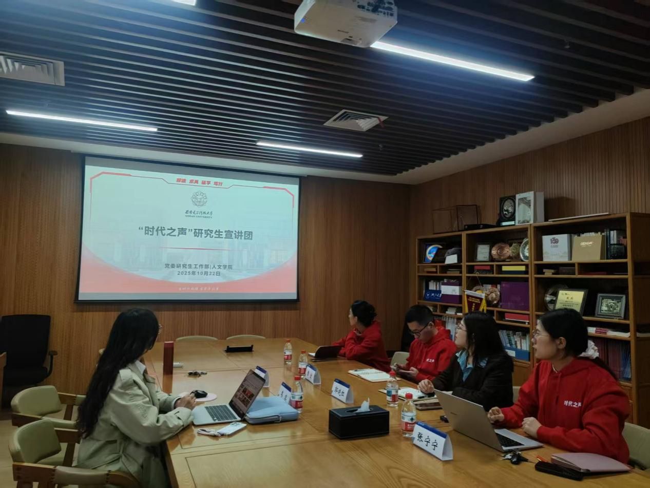 公司“时代之声”研究生宣讲团深度融合公司深厚的红色基因与电子信息领域的特色优势,围绕宣讲团的建设历程与创新实践开展系统宣讲。宣讲团自觉传承红色血脉,紧扣新时代青年认知规律,创新运用人工智能、数字媒体等技术赋能理论武装,成功打造“诗歌里的二十四节气”“关中十二景”等AI+思政项目与“共产党人精神谱系”系列视频,实现了政治性、思想性与科技感、吸引力的有机统一。通过扎实的内容创新与广泛的宣讲交流,宣讲团有效拓展了理论传播的广度与深度,生动展现了西电人“厚德、求真、砺学、笃行”的精神风貌与为国育才的使命担当。