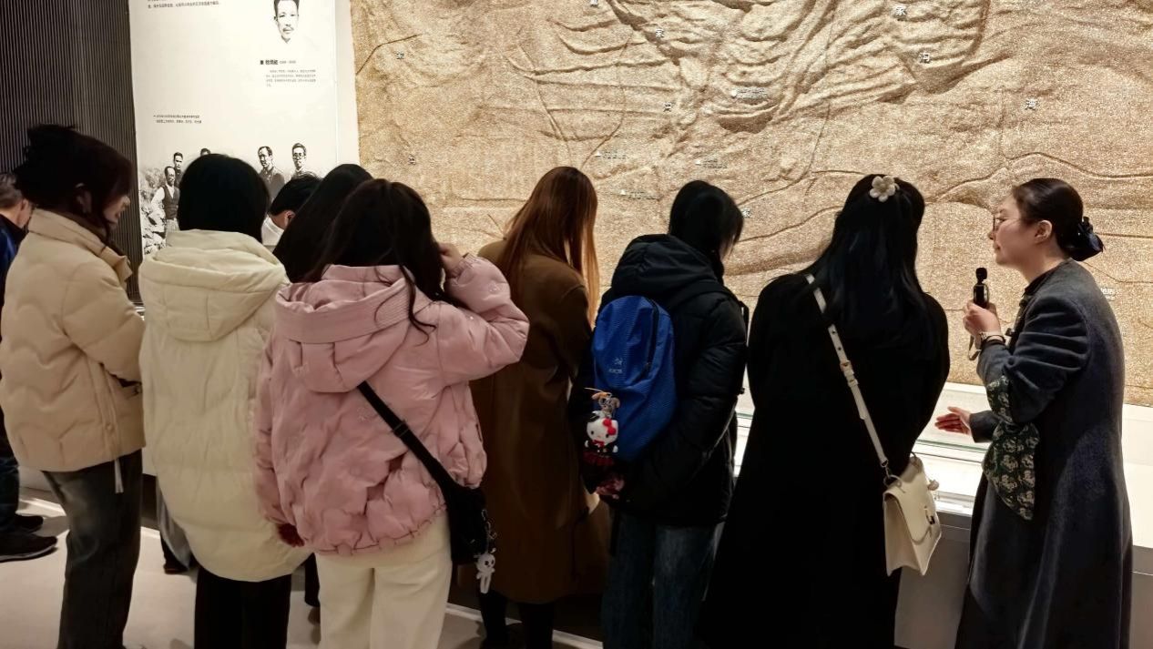 进入“文化谱系”展厅,展品构建起从旧石器时代到西周时期的文化发展框架。讲解员结合地层示意图和陶器类型演变图表,具体说明了考古学家如何通过器物形制、纹饰和组合关系,来断定遗存年代与文化属性。“考古发现”展厅集中展示了陕西重大考古项目成果,在“隋唐长安城考古”单元,研究生们驻足于细致的里坊复原模型前,并仔细观察了出土的建筑构件。讲解员以实际案例,解释了如何通过勘探确定城墙、道路布局,以及如何从出土文物推断城市生活面貌。在“唐代韩休墓壁画”展区,博物馆创新性地将气势恢宏的山水壁画真迹与考古发掘现场照片、文物保护实验室场景并置,清晰展示了从墓葬发现、现场提取、到实验室修复、研究展示的全流程。
