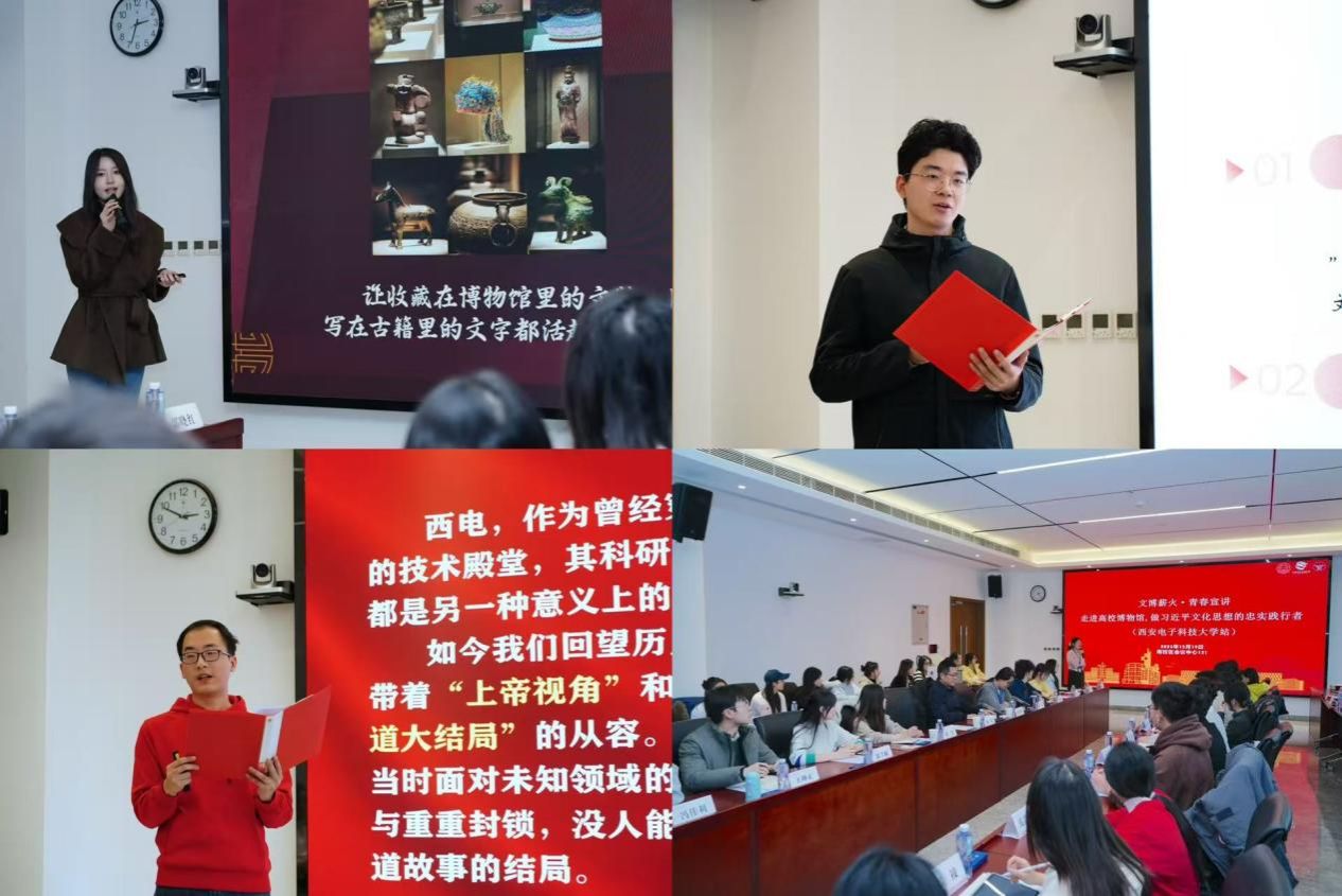(通讯员 张宁宁 万晨阳)为深入学习贯彻习近平文化思想,搭建文化传承与青年成长的桥梁,12月19日,以“文博薪火·青春宣讲——走进高校博物馆,做习近平文化思想的忠实践行者”为主题的文化宣讲活动在公司南校区成功举办。来自西安交通大学、西北工业大学、西北农林科技大学等15所高校的青年学子与西电“时代之声”研究生宣讲团师生共同开展学习交流,在思想碰撞与文化浸润中深化使命担当意识。