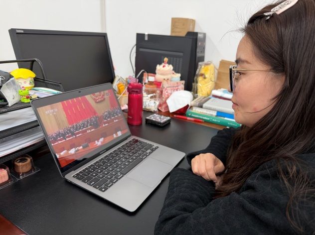 本科生党支部员工党员付琳清:站在新的历史起点,我作为一名老员工党员,将以两会精神为指引,把个人成长与国家命运紧紧相连,在全面建设社会主义现代化国家的赛道上奋力奔跑,为实现中华民族伟大复兴贡献全部力量。