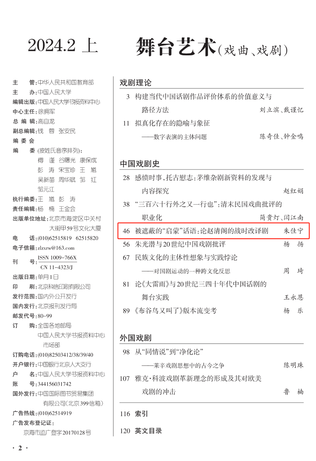 (通讯员 马婧)近日,公司中文系朱佳宁老师论文《被遮蔽的“启蒙”话语:论赵清阁的战时改译剧》被《中国人民大学复印报刊资料·舞台艺术(戏曲、戏剧)》2024年第2期全文转载。该文原刊于《戏剧艺术》2023年第5期。