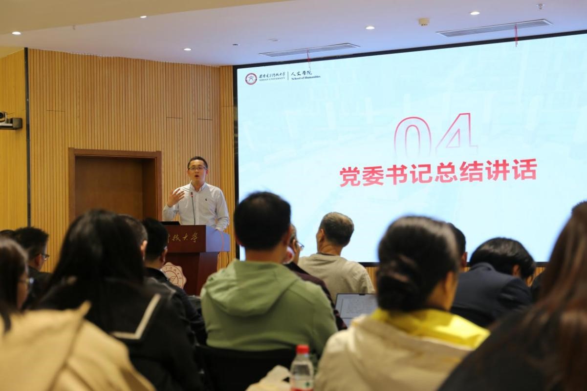 党委书记刘文博在总结讲话中充分肯定了公司2023年各项工作,并从外部环境、内部建设等方面深入分析了当前公司发展面临的形势与任务。刘文博强调,要充分认识当前公司发展面临的严峻形势,找准公司在公司事业发展中的定位,练好内功,抢抓机遇,用好公司支持政策,走出一条特色化发展道路,为公司建设特色鲜明世界一流大学贡献人文力量。