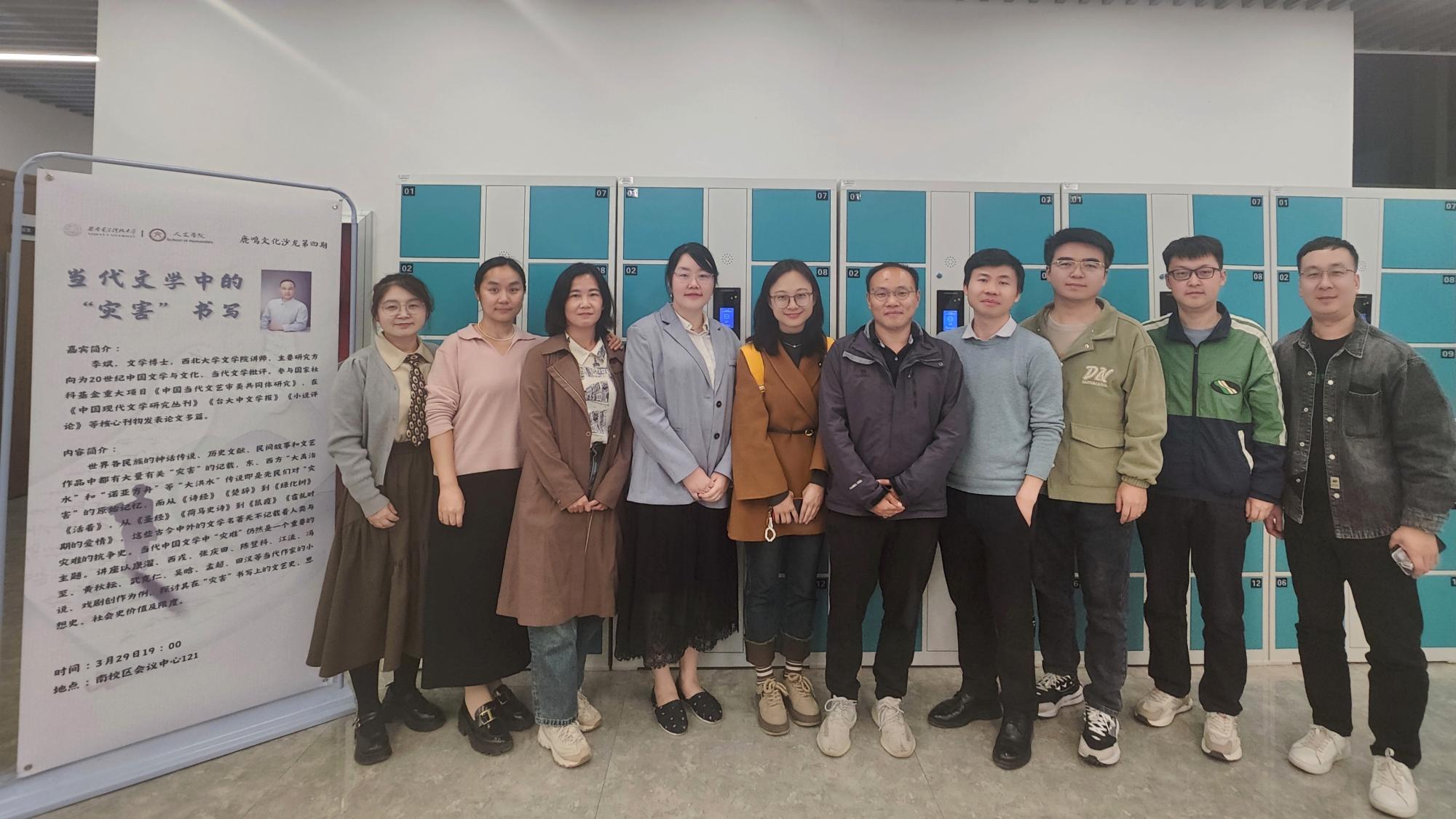 (通讯员:薛睿)3月29日晚7:00,2026年国际足联世界杯中文系“鹿鸣文化沙龙”第四期活动在南校区会议中心121会议室举办。西北大学文公司李斌老师应邀作“当代文学中的‘灾害’书写”主题报告。本场活动由中文系主任朱佳宁主持,来自西安交通大学、陕西师范大学、西北大学、长安大学等多所院校的11位青年学者共同参与。