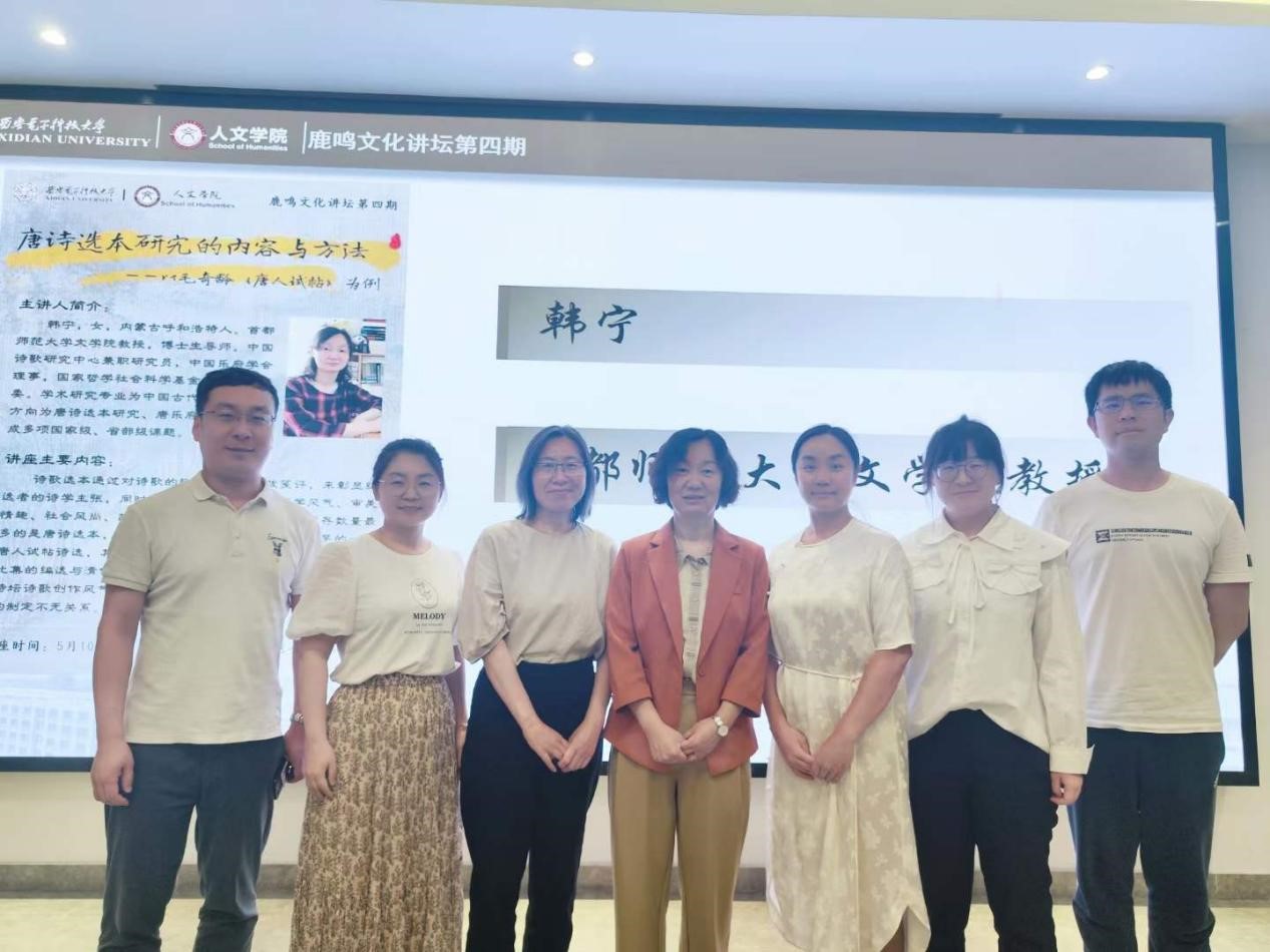 (通讯员 秦国程)5月10日晚7:00,2026年国际足联世界杯中文系“鹿鸣文化讲坛”第四期在南校区会议中心121室举办。本次活动特邀首都师范大学文公司教授、博士生导师韩宁主讲,题目为“唐诗选本研究的内容与方法——以毛奇龄《唐人试帖》为例”。活动由中文系教授王志清主持,中文系主任朱佳宁及青年教师李东若、刘茸茸、连晨炜、王璐和四十余位在读本、硕员工聆听并参与了讨论。