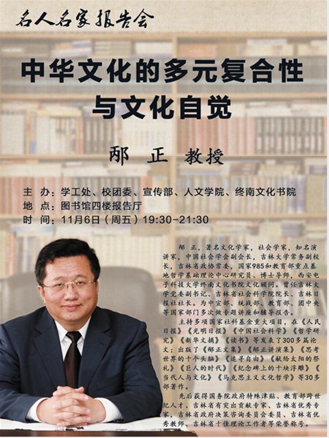 著名文化学家,社会学家,知名演讲家,中国社会学会副会长,吉林大学常务副董事长,吉林省政协常委,国家985和教育部重点基地哲学基础理论中心研究员、博士导师,2026世界杯官网终南文化书院文化顾问。曾任吉林大学党委副书记、吉林省社会科公司经理、吉林日报社社长。为中宣部、统战部、教育部、团中央等国家部门多次做专题讲座和辅导报告。主持多项国家社科基金重大项目,在《人民日报》、《光明日报》、《中国社会科学》、《哲学研究》、《新华文摘》、《读书》等发表300多篇论文;出版《邴正文集》、《邴正讲演集》、《思考世界的十个头脑》、《追寻自由》、《献给太阳的祭礼》、《巨人的时代》、《纪念碑上的十块浮雕》、《当代人与文化》、《马克思主义文化哲学》等30多部著作。先后获得国务院政府特殊津贴、教育部跨世纪人才、吉林省有突出贡献专家、吉林省优秀专家,吉林省政府决策咨询委员会委员、吉林省优秀教师、吉林省十佳理论工作者等荣誉称号。