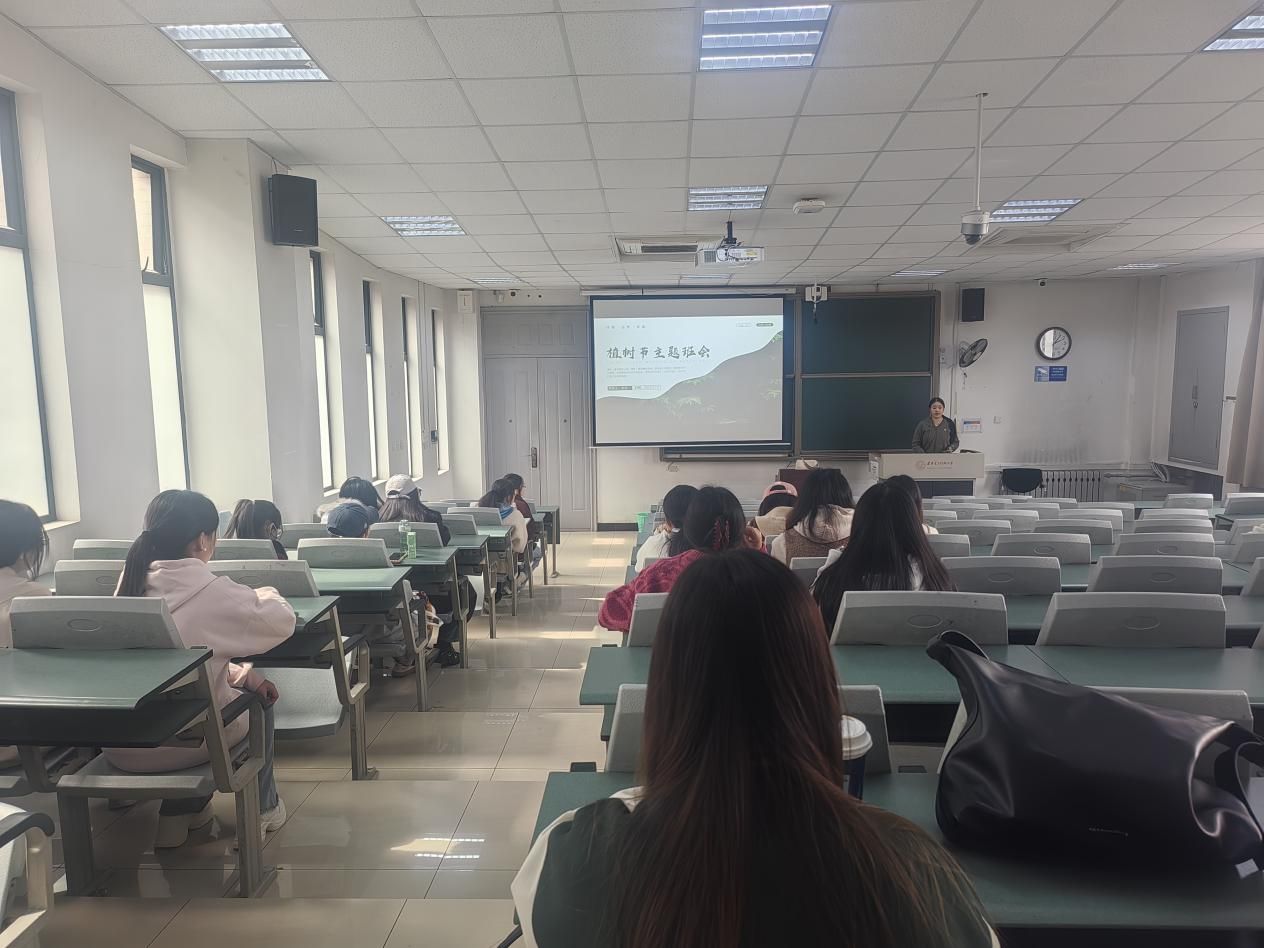 本次活动涵盖理论学习与实践体验两个部分。在理论学习环节,班主任刘茸茸强调:“新时代青年必须牢固树立生态价值观,以实际行动践行生态文明建设。”辅导员郭晓红通过“塞罕坝三代人治沙”“蚂蚁森林全民种树”等鲜活案例,生动诠释了“绿水青山就是金山银山”的深刻内涵。员工李含一结合纪录片《绿色中国梦》,讲述了我国植树节的由来和植树造林的重要意义,展现了中国治理荒漠化的决心与效率。理论学习后,在班主任和辅导员的带领下,同学们前往南操场西侧进行植树活动,让防治荒漠化的理论认知转化为扶苗培土的实际行动,在汗水中深化了对生态文明建设“知行合一”的理解。