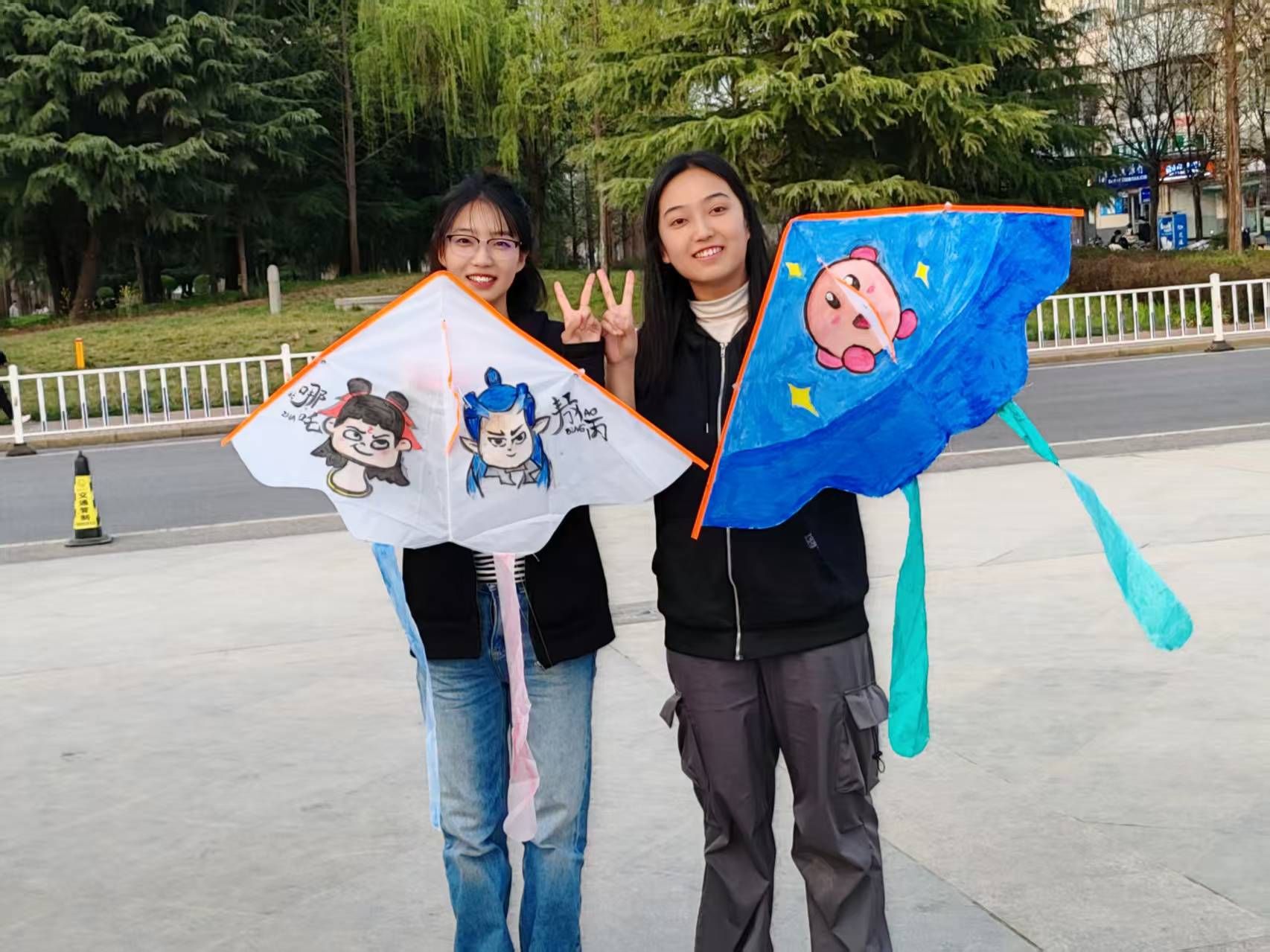 下午4时,礼仪广场化身为露天艺术工坊。素白风筝与缤纷颜料整齐陈列,同学们伏案创作,用画笔在素白风筝上细细勾勒脑海中的图案,将自己对春天的想象画在风筝上。青团与红豆沙泥青红相映,显示出春天的色彩。红色的馅料被温柔包裹,透露出清甜、软糯的味道。