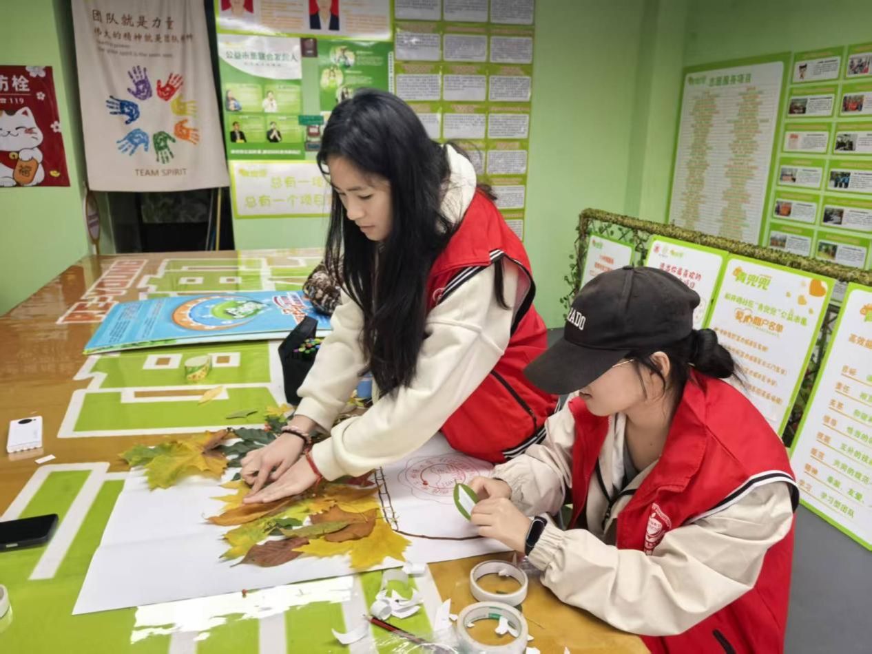 活动中,同学们收集落叶并制作环保主题宣传画,通过实物与艺术结合的方式传递绿色理念,增强社区居民的环保意识。大家将落叶转化为画面素材,绘就“珍惜自然”“守护家园”等主题海报,以实际行动宣传环境保护。