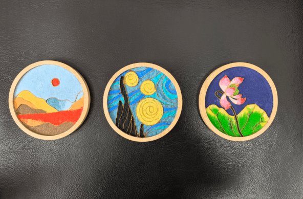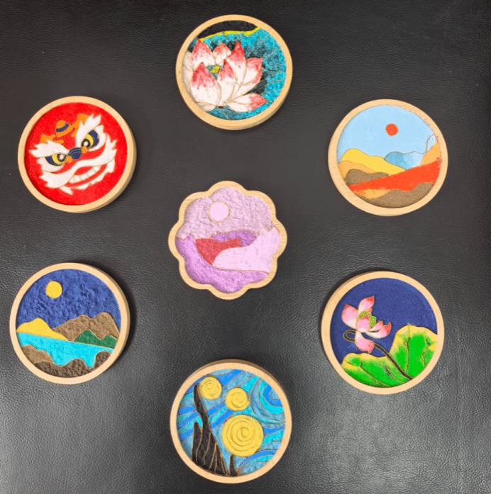 掐丝环节需要极大的耐心与专注,女教师们以铜丝为笔,以釉料为墨,全神贯注地投入创作。活动现场气氛热烈而温馨,大家互相交流制作技巧,分享配色心得,欢声笑语不断。经过两个多小时的精心制作,一件件兼具古典韵味与现代美感的掐丝珐琅作品逐渐呈现,看着自己亲手制作的精美作品,老师们的脸上洋溢着满满的成就感与喜悦。