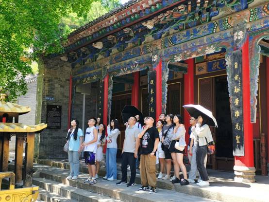 第二站来到岐山县的周公庙。周公庙位于凤凰山南麓,这里是周公家族彩邑之地,也是宗庙所在。周公庙后经宋、元、明、清历代修葺、扩建,形成了以周三公(周公、召公、太公)殿为主体,姜嫄、后稷殿为辅,亭、台、楼阁点缀辉映,文化底蕴深厚。老师和同学们身临其境,不仅对周文化形成的宗亲谱系有系统了解,还感受到礼乐与宗族制度中的文化意蕴。老师和同学们一路同行,分享历史典故,交流所思所感。